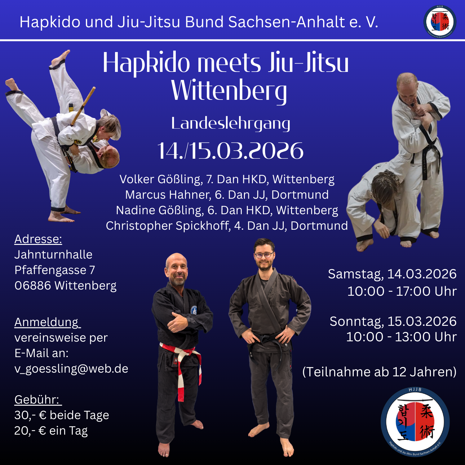 Hapkido meets Jiu-Jitsu Wittenberg Landeslehrgang 14. & 15. März 2026 Lutherstadt Wittenberg weitere Infos folgen Hapkido meets Jiu-Jitsu Wittenberg